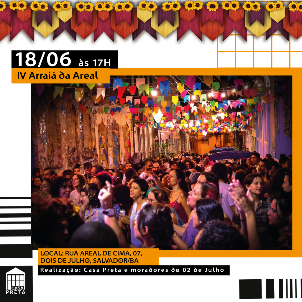 Dois anos sem São João. Mas a gente quer sacudir a poeira e dar a volta por cima. Estamos felizes. Ficando felizes, ao menos. A programação de junho tá massa, bem diversificada, e nosso Arraiá tá de volta! Essa festa, que durante três anos fez o Dois de Julho parecer ainda mais com o interior da Bahia, que fez tanta gente se encontrar na esquina da Areal de Cima com ela mesma, ali, no cantinho entre as três fachadas fechadas e o portão de ferro cerrado. Uma esquina de onde crianças e adolescentes, infantes, saíram para guerrear usando nossa maior arma: a arte, o teatro. São João, Xangô Menino.