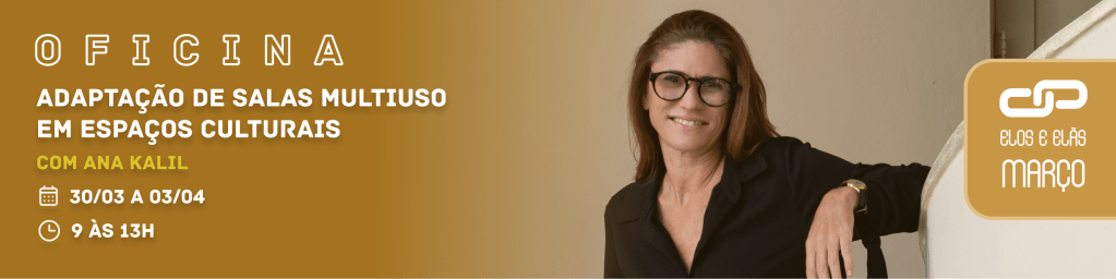 Ana Kalil chega a Casa Preta na última semana de março para orientar uma oficina de Adaptação De Salas Multiuso em Espaços Culturais, de 30/03 a 02/04 (segunda a quinta), sempre das 8h às 13h, com inscrições on-line através do formulário eletrônico https://bit.ly/3Nq40LW